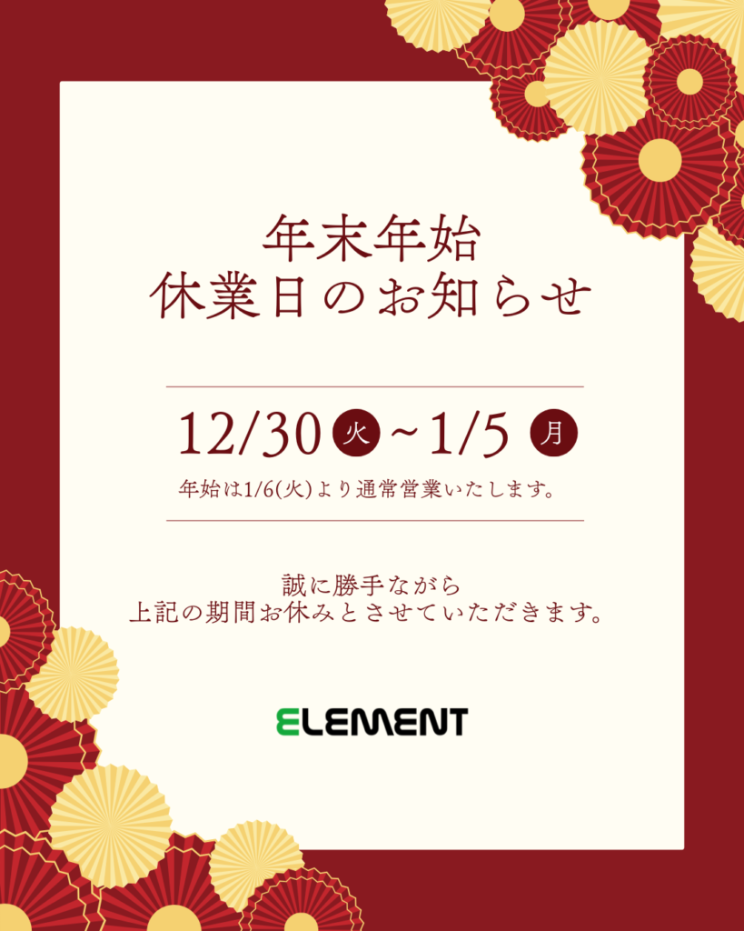 弊社では、誠に勝手ながら下記期間を年末年始休業とさせていただきます。